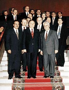 First Row (l-r): Badr Al-Aiban, President of Delta Oil (Saudi Arabia); Heydar Aliyev, President of Azerbaijan; and Jan Kalicki, U.S. Dept of Commerce.